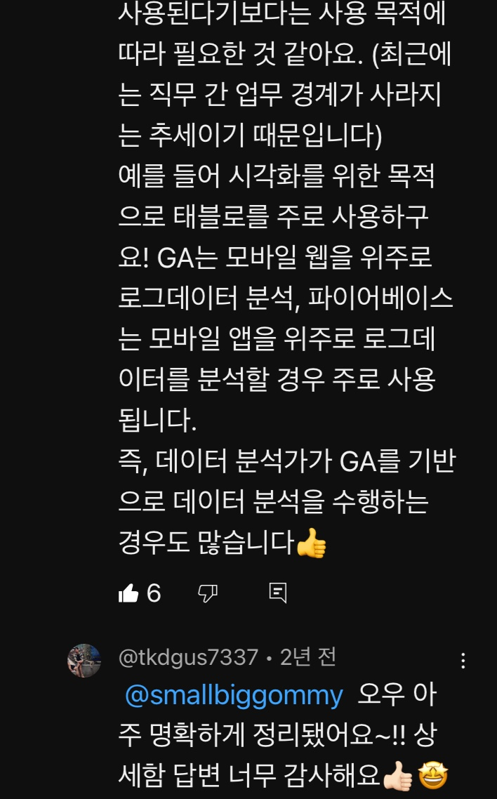 따라서 서비스 기획자는 업무의 성격상 'A 테이블에 있는 B 컬럼의 C 데이터' 등으로 로그데이터의 정확한 적재 위치를 직접 알고 있다면 데이터 분석 업무가 훨씬 수월해진다.